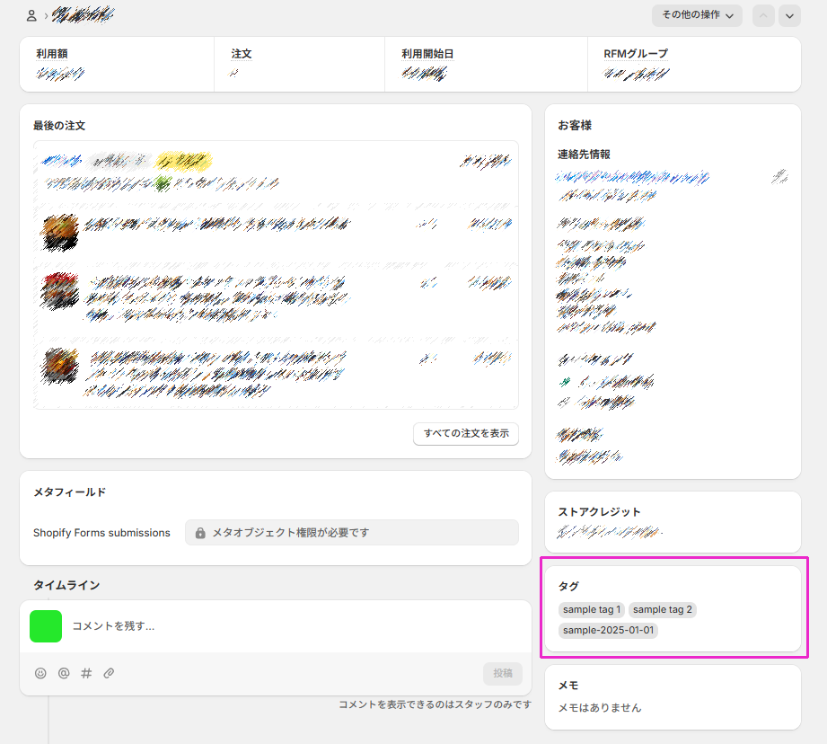 各顧客に付与することができるタグです。