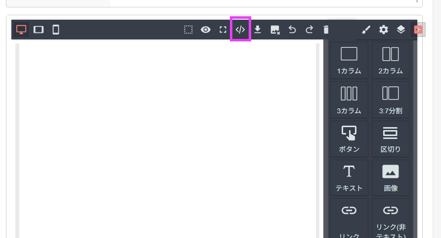 - エディターのViewCode「</>」ボタンを押し、出てきたコードを全文コピーして、メモ帳等に貼り付ける。